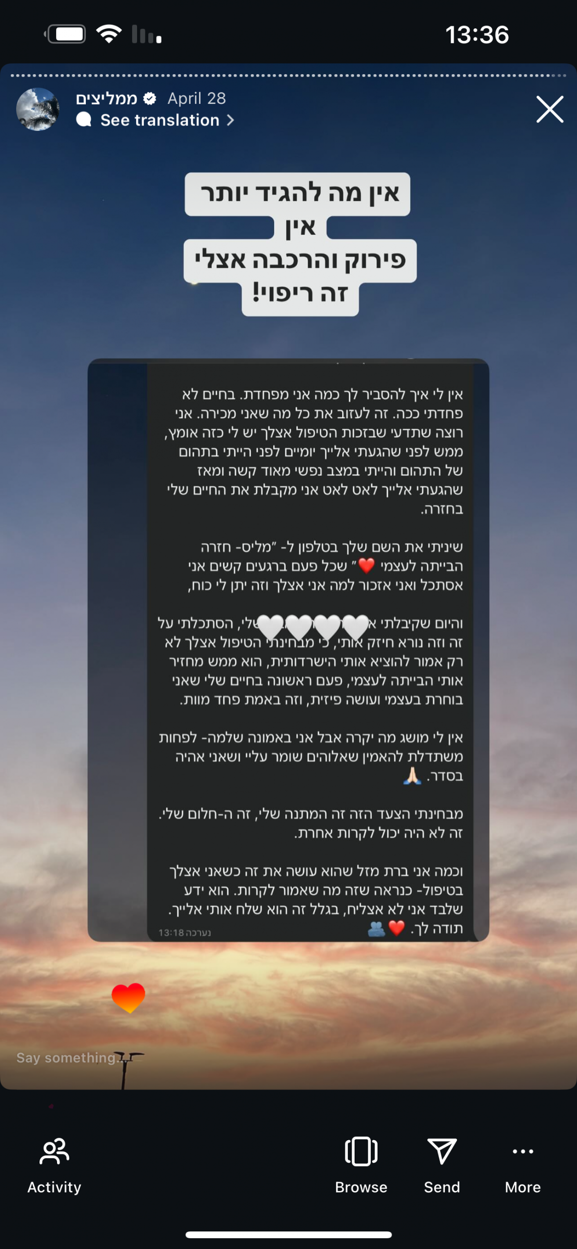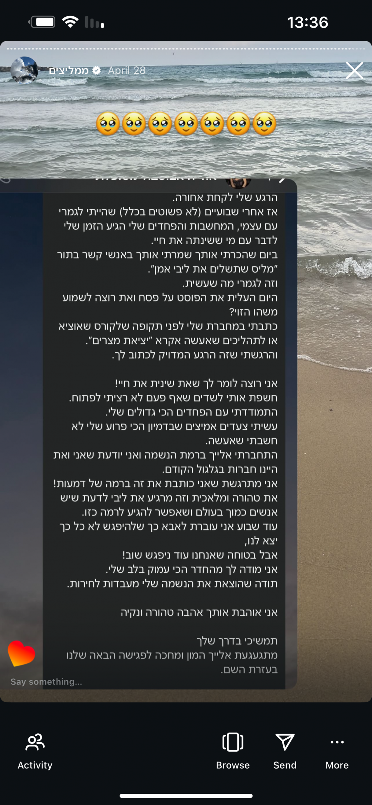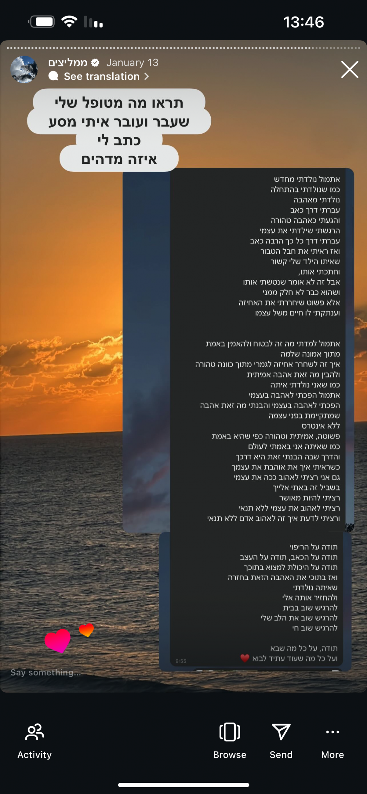 מצאתי בתוכי כוחות שאפילו לא ידעתי שקיימים. למדתי לא רק לשרוד, אלא לברוא מחדש את מציאות חיי, להתחבר לעומק הנשמה שלי ולגלות את הייעוד האמיתי שלי.